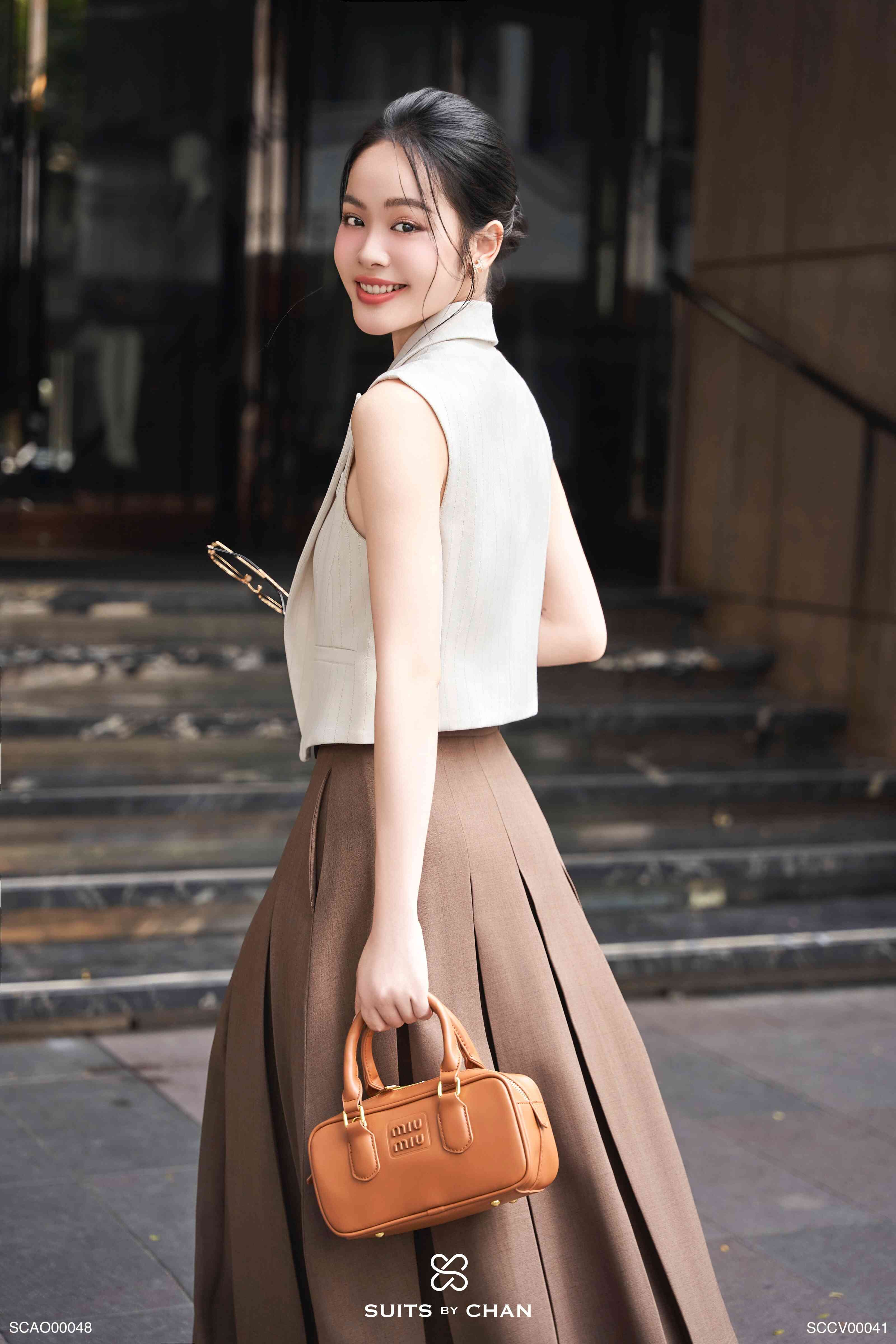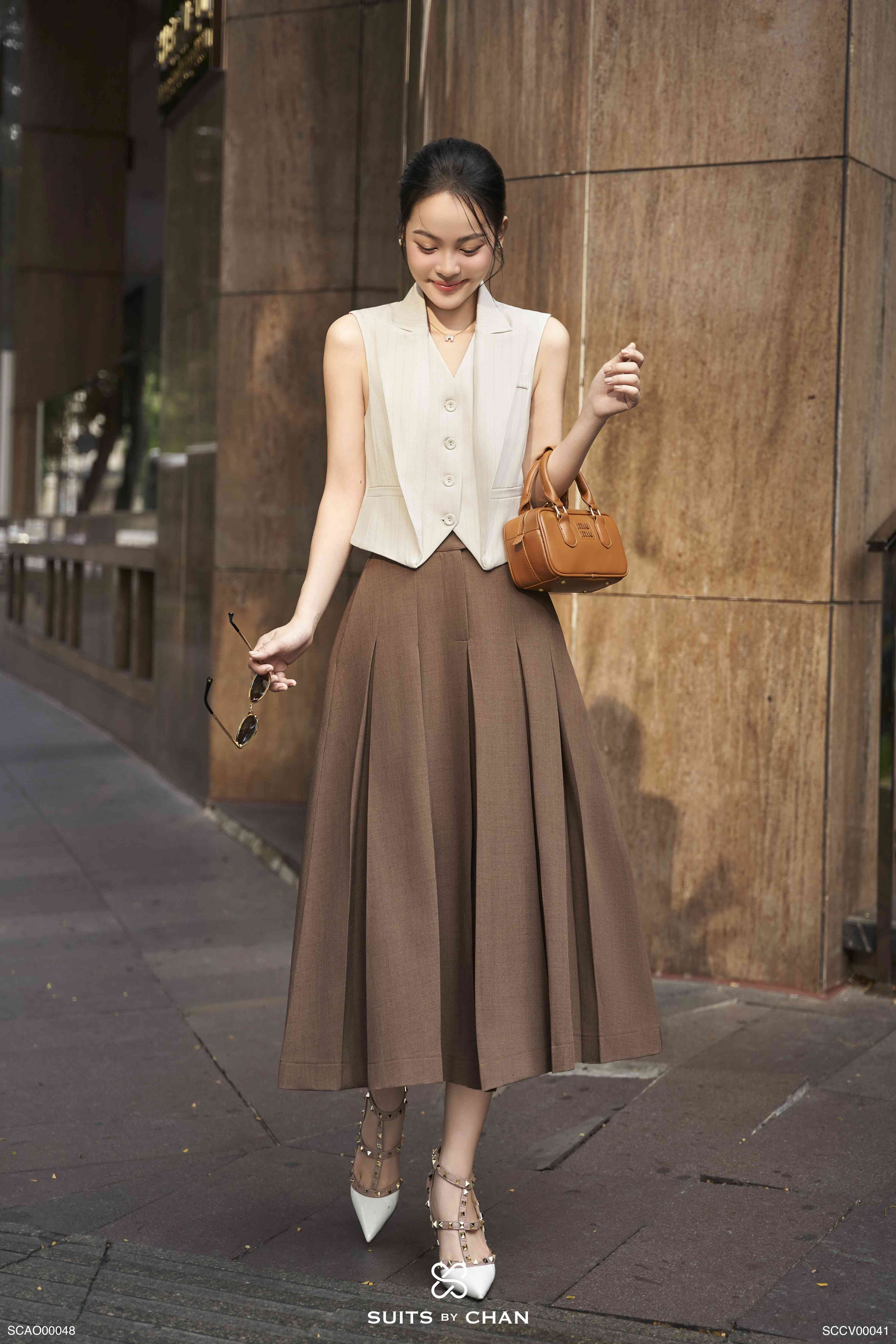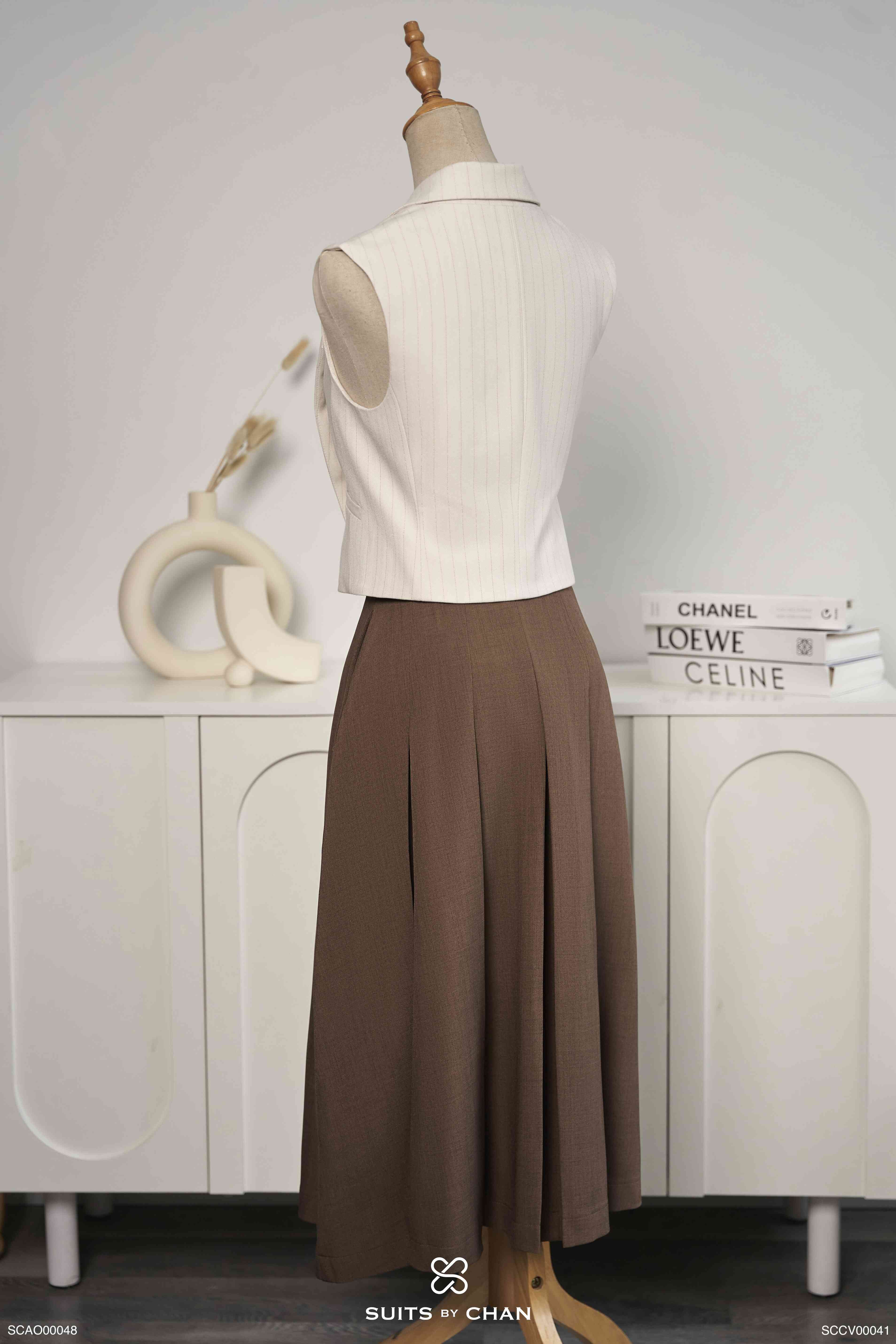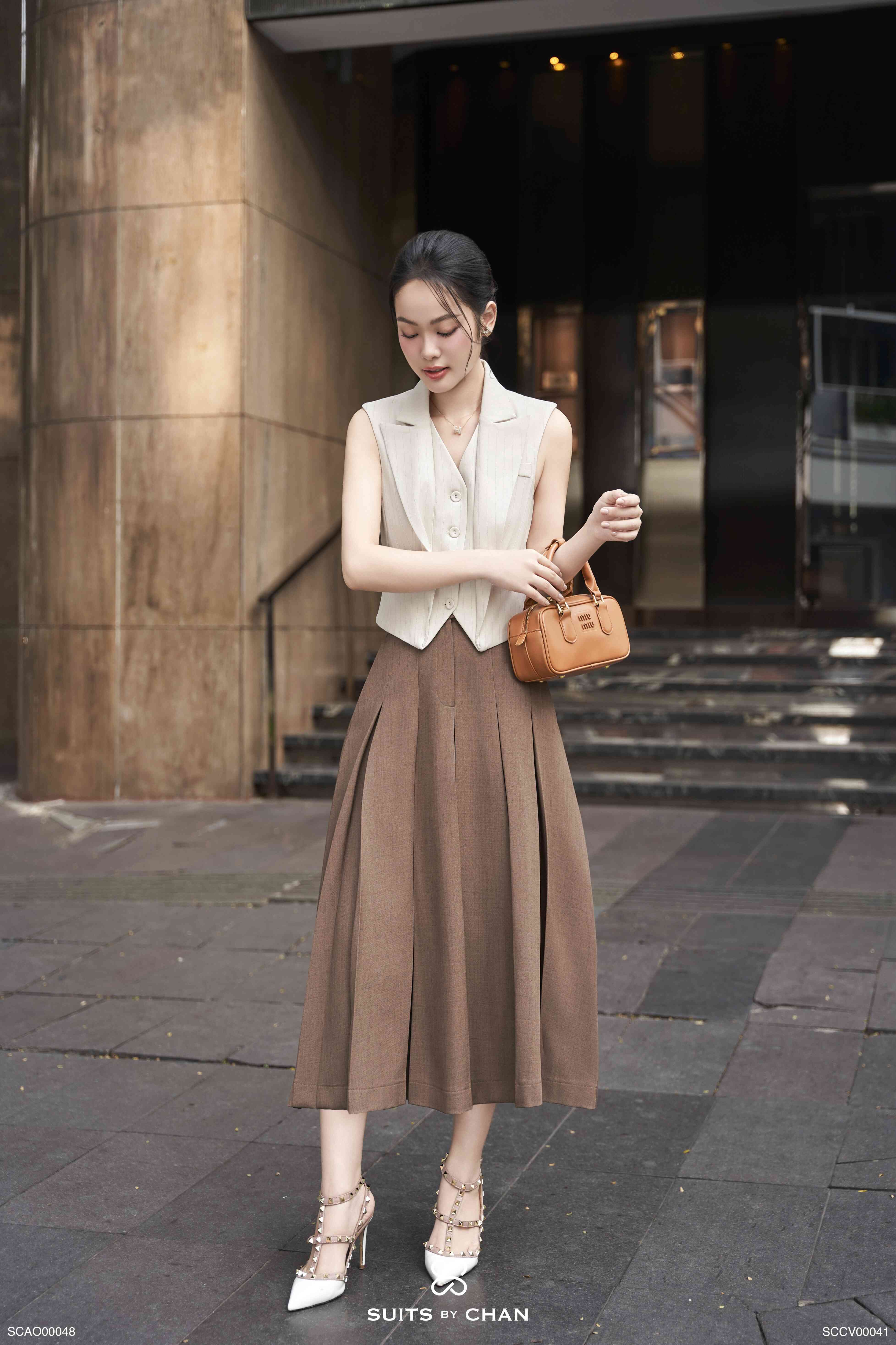 - Màu sắc: Áo kem. Váy nâu
